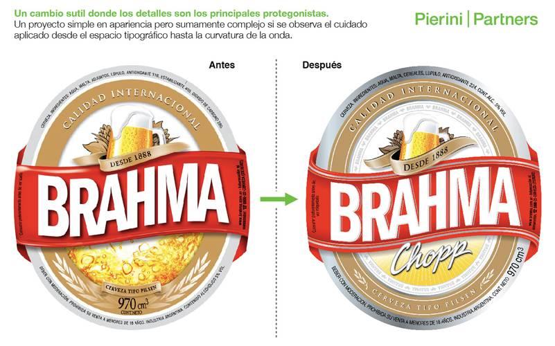 Desde su llegada a la Argentina, la cerveza Brahma con los años ha experimentado distintos cambios en su packaging vinculados, tanto a decisiones estratégicas como a tendencias estéticas. Su etiqueta se mostró inicialmente simple, sus elementos eran escasos y sin grandes detalles en lo relacionado a ilustraciones, misceláneas o tipografías. Con el tiempo esa imagen se fue puliendo hasta lograr mayor impacto mediante el uso de zonas importantes de color, la inclusión de fotos de producto e iconografía de mayor complejidad. Este avance significó sin lugar a dudas, un crecimiento significativo en lo que respecta a su impacto visual pero no cubría el total de las necesidades comunicacionales, más específicamente su lado cualitativo era opacado por la faceta espontánea e informal de la marca.