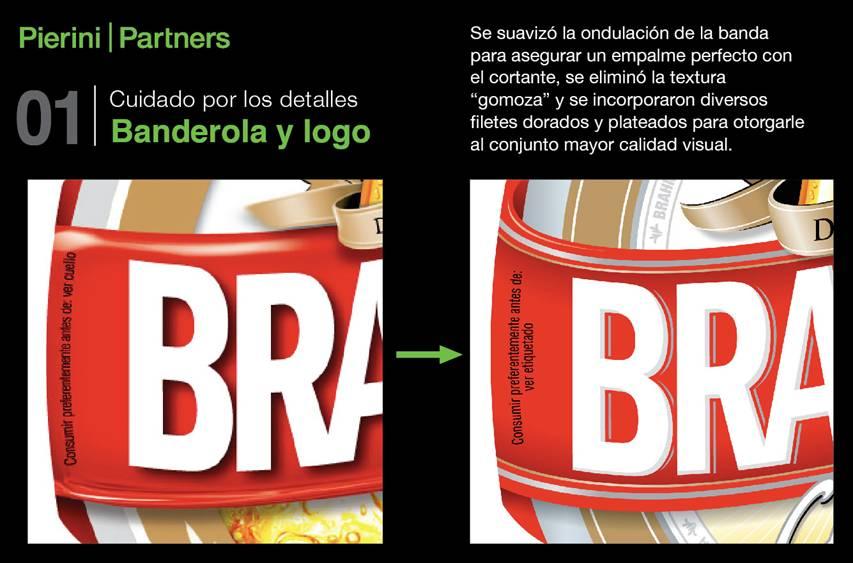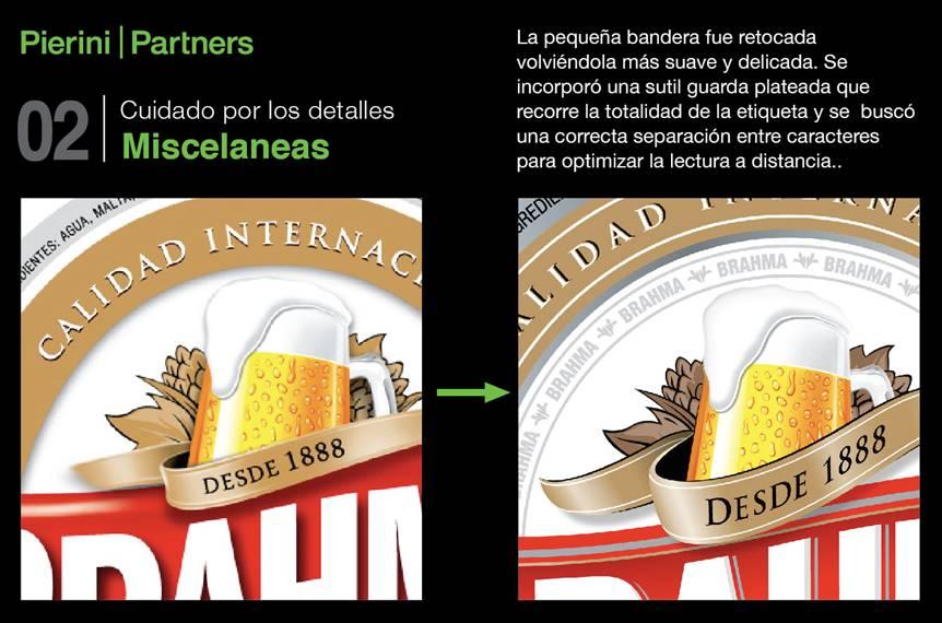 Una cosa era segura, Brahma debía sumar, no cambiar. Su imagen logró, con el tiempo, importantes mejoras estéticas por lo que prescindir de ellas sería ignorar muchos de los atributos valorados por su target. La decisión frente a este panorama consistió en realizar un aggiornamiento de la etiqueta existente, es decir, un ajuste sutil de cada una de sus partes con el fin de acentuar tres atributos fundamentales de la marca: Tradición, Prestigio y Calidad.